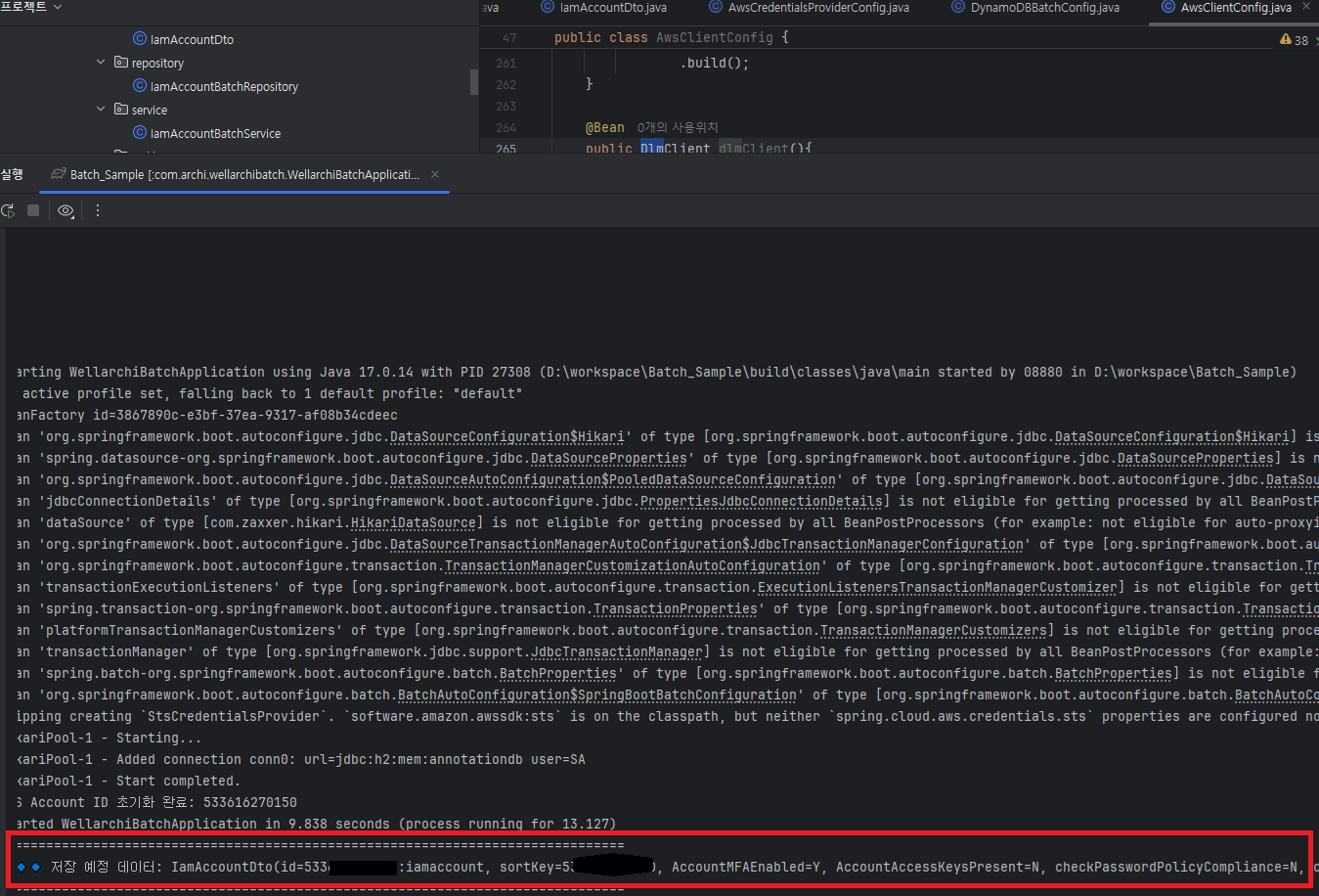 아래 그림 처럼 AWS 계정 정보를 조회해 Root 계정 설정 정보를 저장하는 SpringBoot Batch를 구현했습니다.