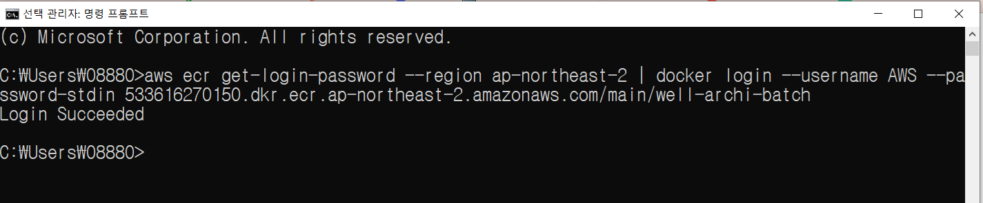 aws ecr get-login-password --region ap-northeast-2 | docker login --username AWS --password-stdin 533616270150.dkr.ecr.ap-northeast-2.amazonaws.com