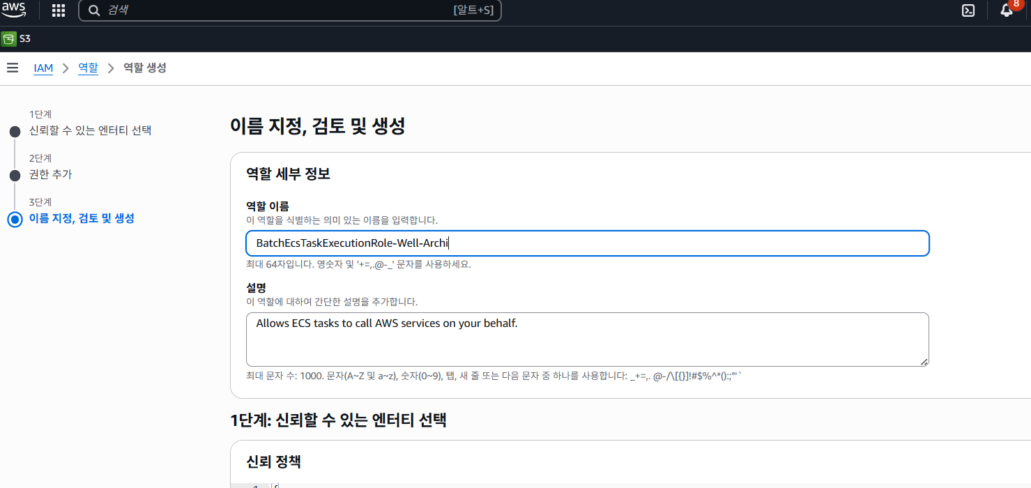 또한, 해당 작업이 실행될 때 ECR에서 이미지를 가져오고 CloudWatch에 Batch 실행 로그를 저장해야 하므로,