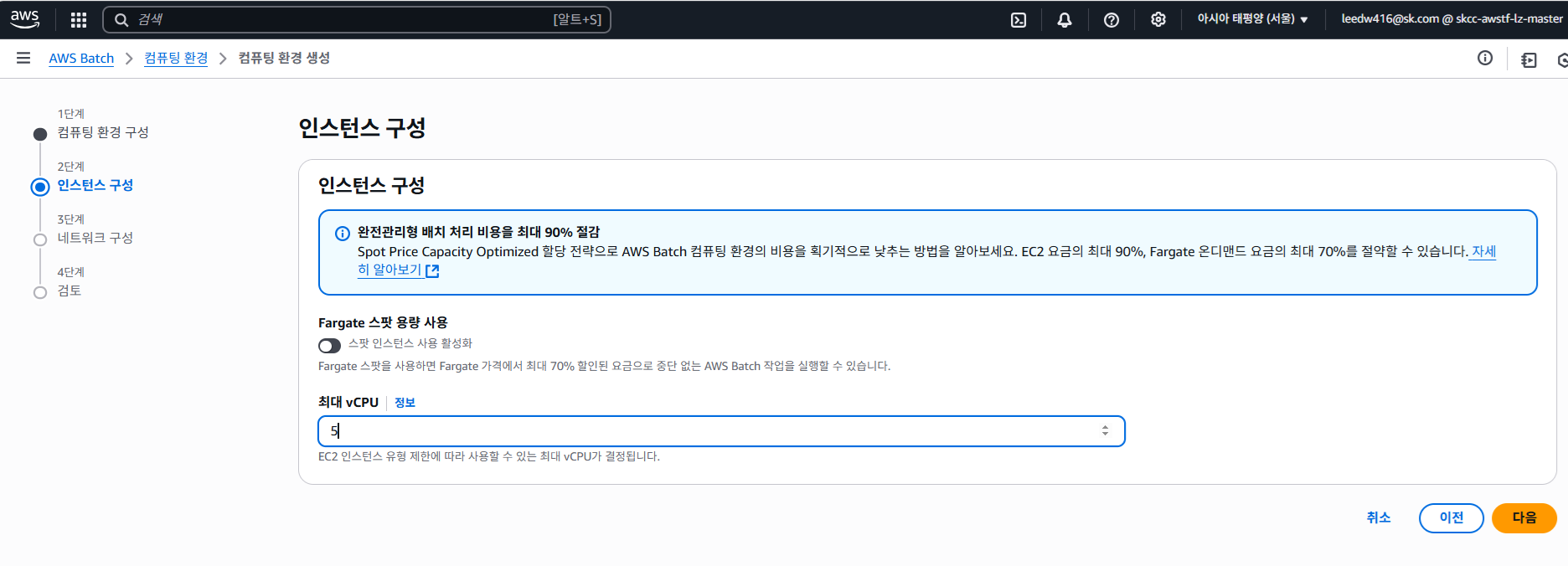 최대 vCPU는 구성하는 배치 크기를 고려하여 설정합니다.