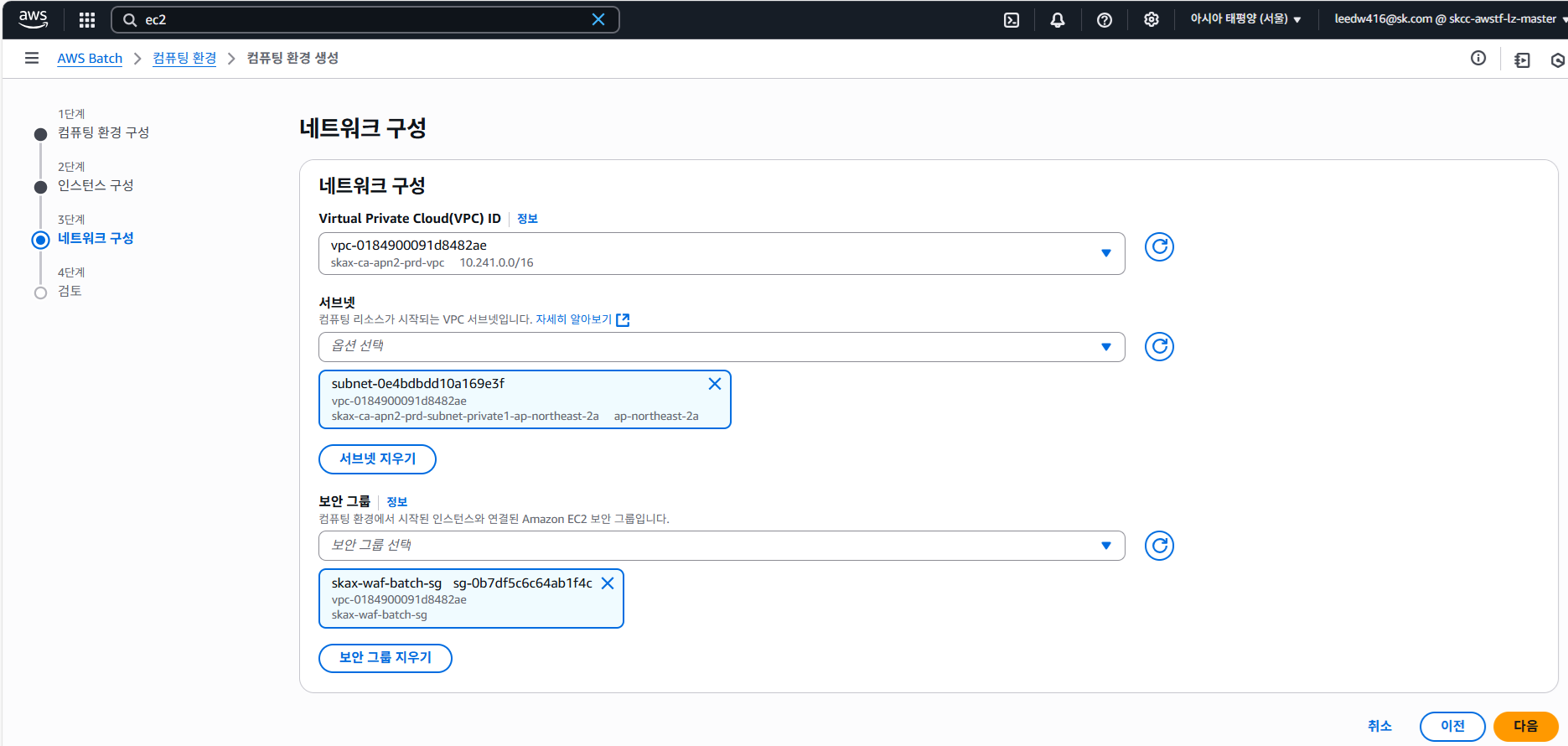 추후에 AWS Batch 구성 시 해당 정보가 필요합니다.