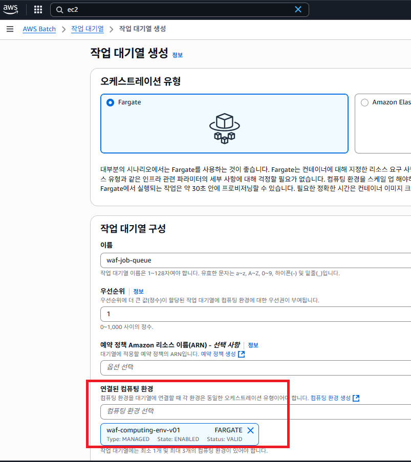 컴퓨터 환경 이름은 waf-computing-env-v01로 설정하였습니다.