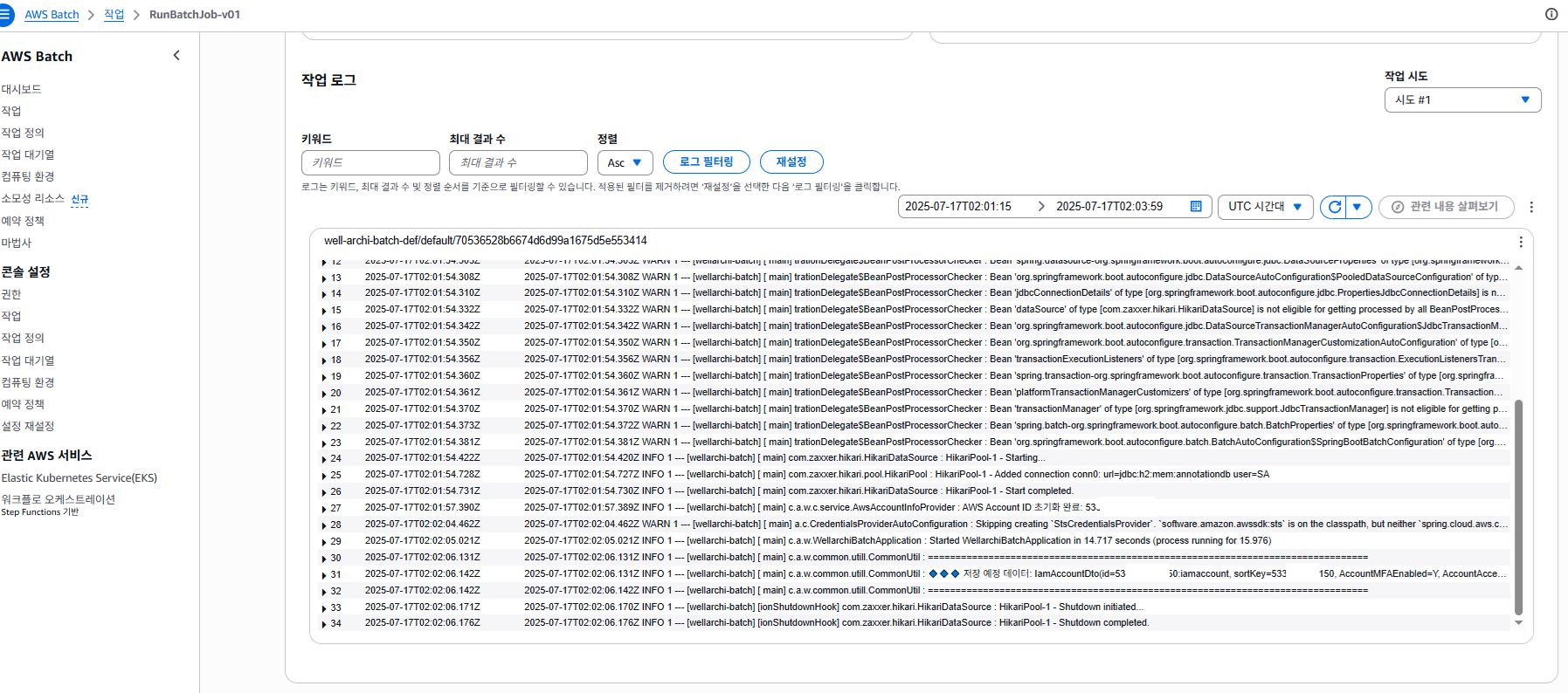 배치 실행이 완료 되면 해당 Job 결과 로깅 탭에 아래 배치가 성공적으로 실행되었다는 것을 볼 수 있습니다.