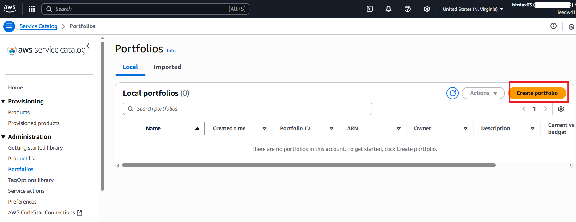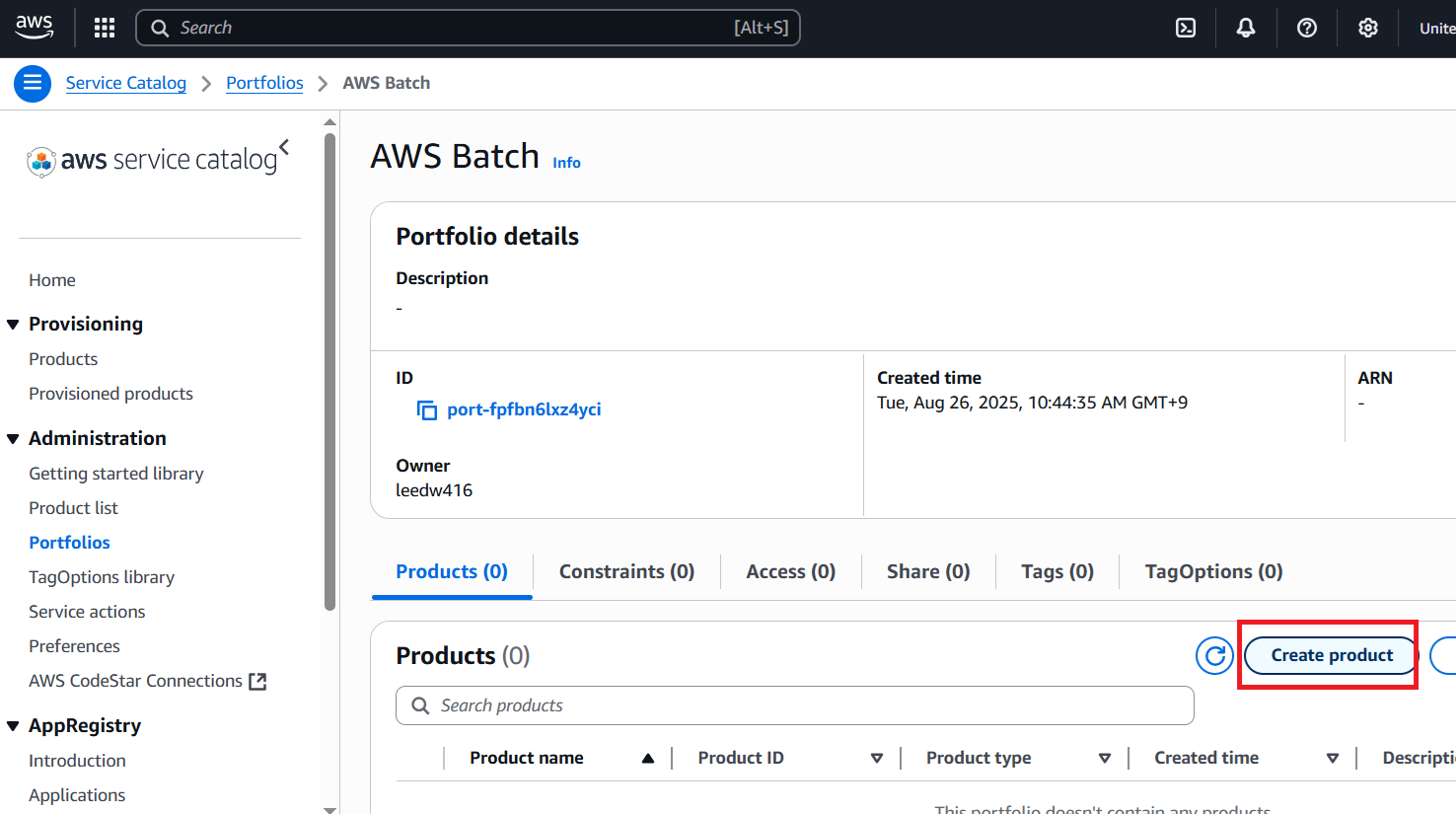 먼저 AWS Service Catalog에서 Portfolio 를 만들고, 그 Portfolio 에 AWS Batch 관련 Product를 등록하겠습니다.